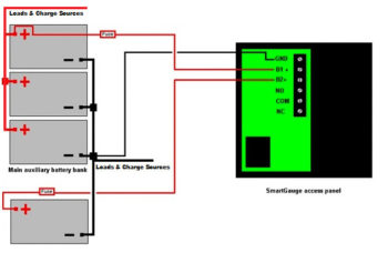 IMPORTANT: Do not wire the Smartgauge to any place other than the actual physical battery terminals.  In order for the Smartgauge to work accurately the positive & negative leads from the Smartgauge need to attach directly to the physical battery terminals, not a positive or negative bus, or anywhere other than the actual battery terminals.